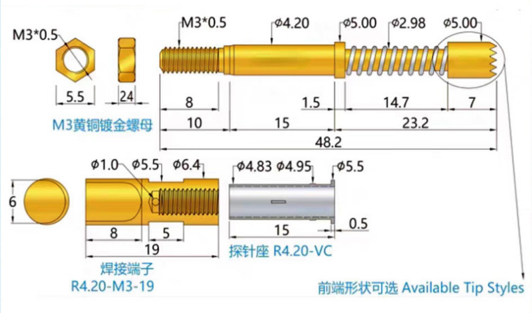 快速插拔:探針是活動的,而針套是固定的。如果在使用過程中探針有問題,只需將損壞的探針拔出更換即可。