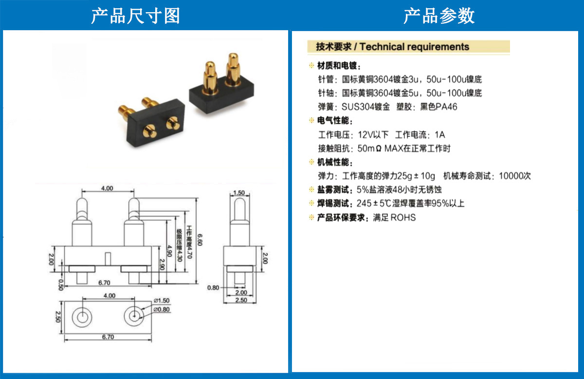 產(chǎn)品介紹:這個(gè)針通常用于智能手表,藍(lán)牙耳機(jī)上的有充電的功能,但是探針總體來(lái)說(shuō)還是測(cè)試的