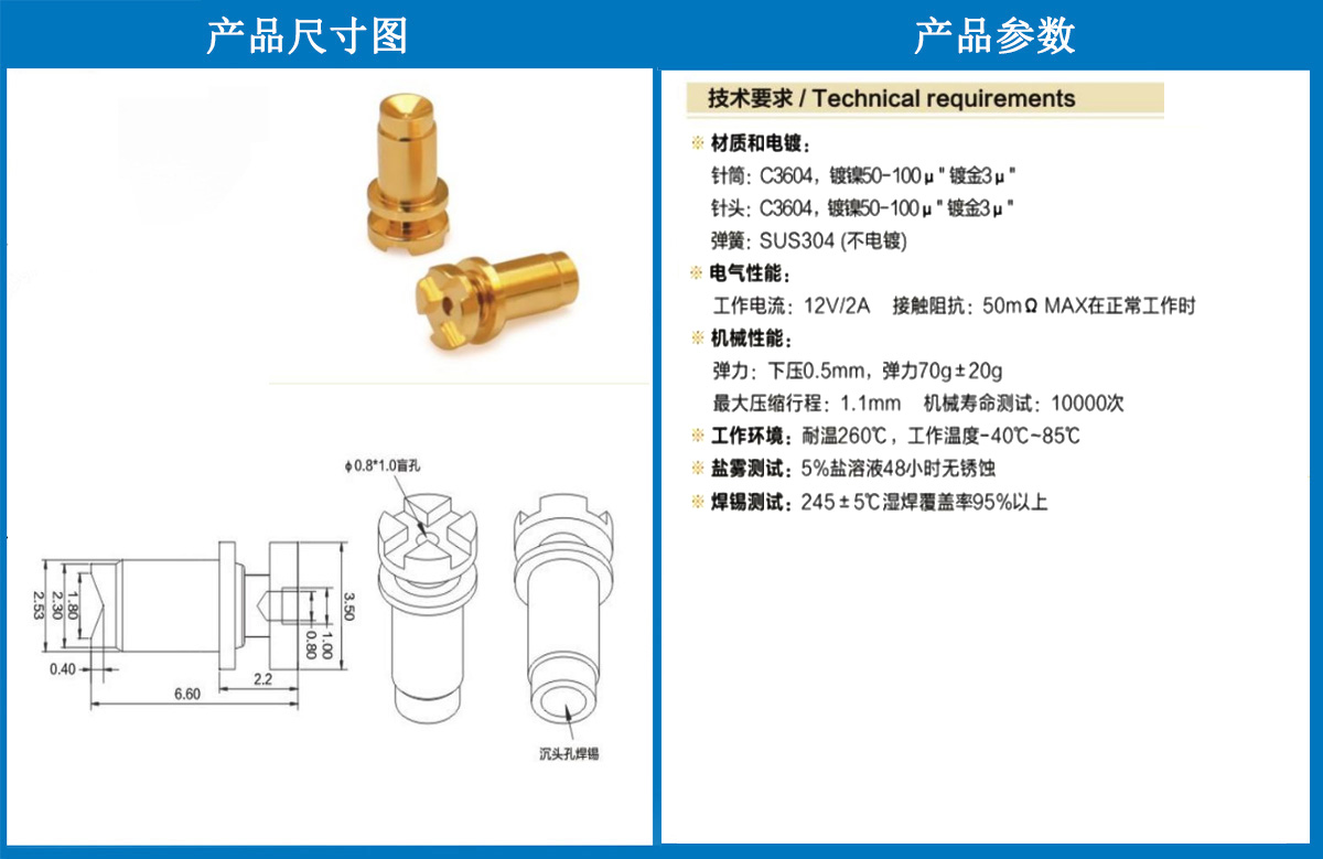 產(chǎn)品介紹:這個針通常用于智能手表,藍(lán)牙耳機(jī)上的有充電的功能,但是探針總體來說還是測試的