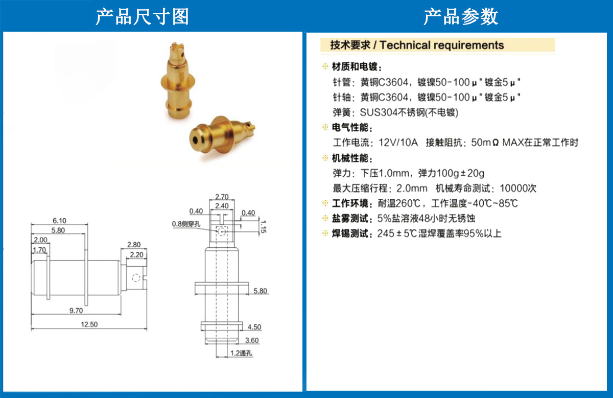 產品型號:5.8*12.5彈針 所屬分類:電流探針 產品優勢:產品定位精度高、產品過載穩定、產品測試誤判率低 主要應用于:智能產品、藍牙耳機、藍牙手環 產品介紹:這個針通常用于智能手表,藍牙耳機上的有充電的功能,但是探針總體來說還是測試的 熱線電話:400-183-6682